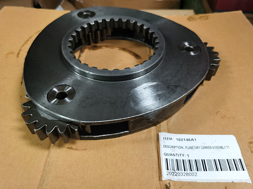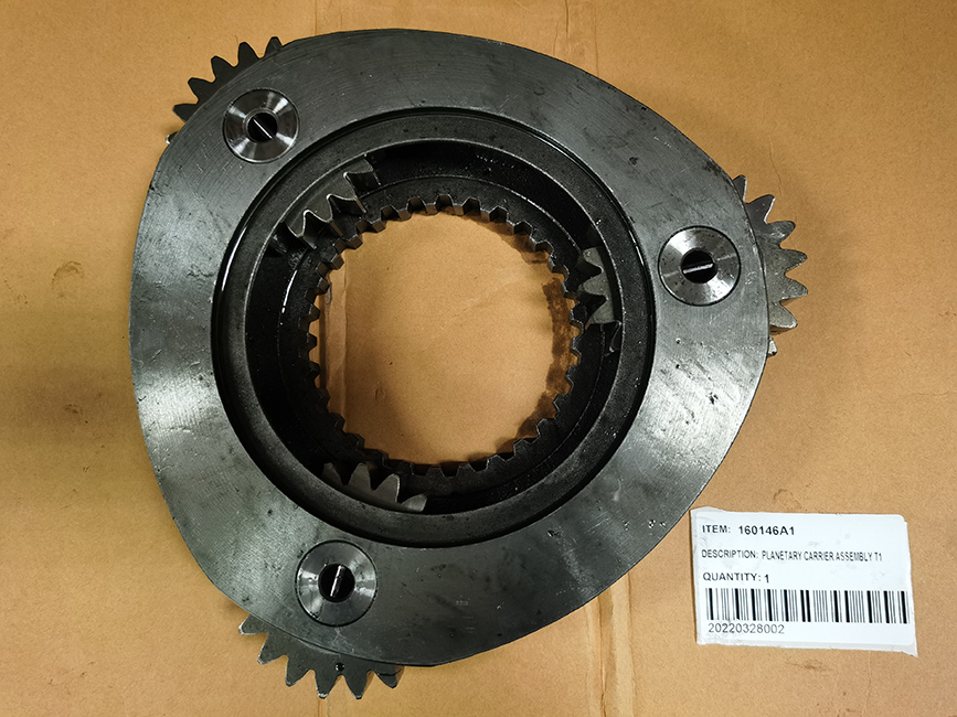 Description: Carrier planetary assembly T1 for a final drive travel gearbox, including the carrier, all the planetary gears, shafts, bearings, pins, and spacers (Travel 1st) for a Case excavator model 9030B.