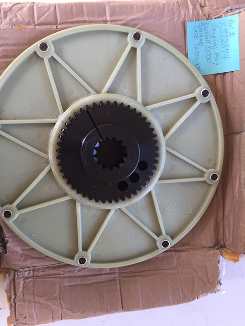 Description: Coupling assembly for engine to hydraulic pump connection, for a Case CX330, CX350, Linkbelt LX330, LX350, Sumitomo SH330, SH350, with 8 mounting bolt flange, and a hub with 46 exterior teeth and 13 interior teeth.