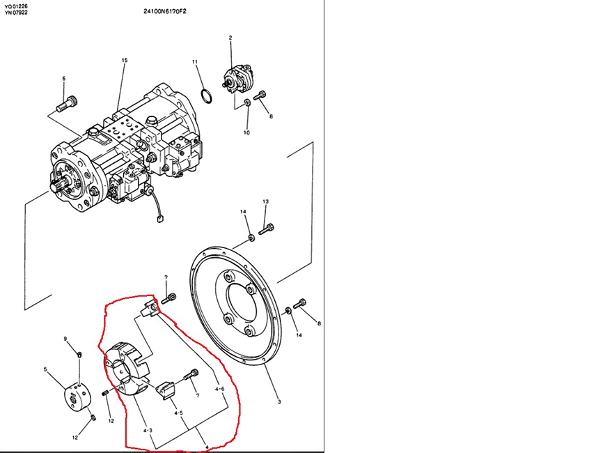 Kobelco - Hydraulic excavator, Hydraulic pump - Coupling, Engine to pump