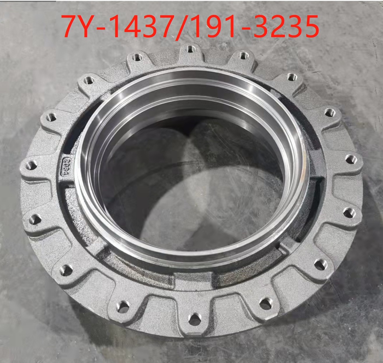 Description: Hub for sprocket, 16-bolt holes, for final drive travel gearbox on a Caterpillar excavator models 320-A, 320-AL, 320-AN, 320L, 320N, 322-AL, 322-ALN, 322L, and 322N.