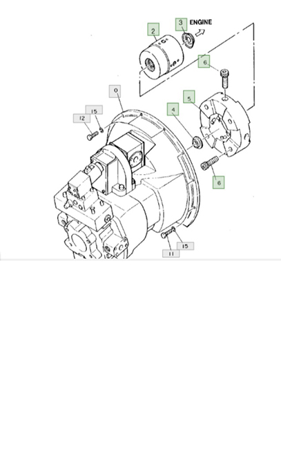 John Deere - Hydraulic excavator, Hydraulic pump - Coupling, Engine to pump