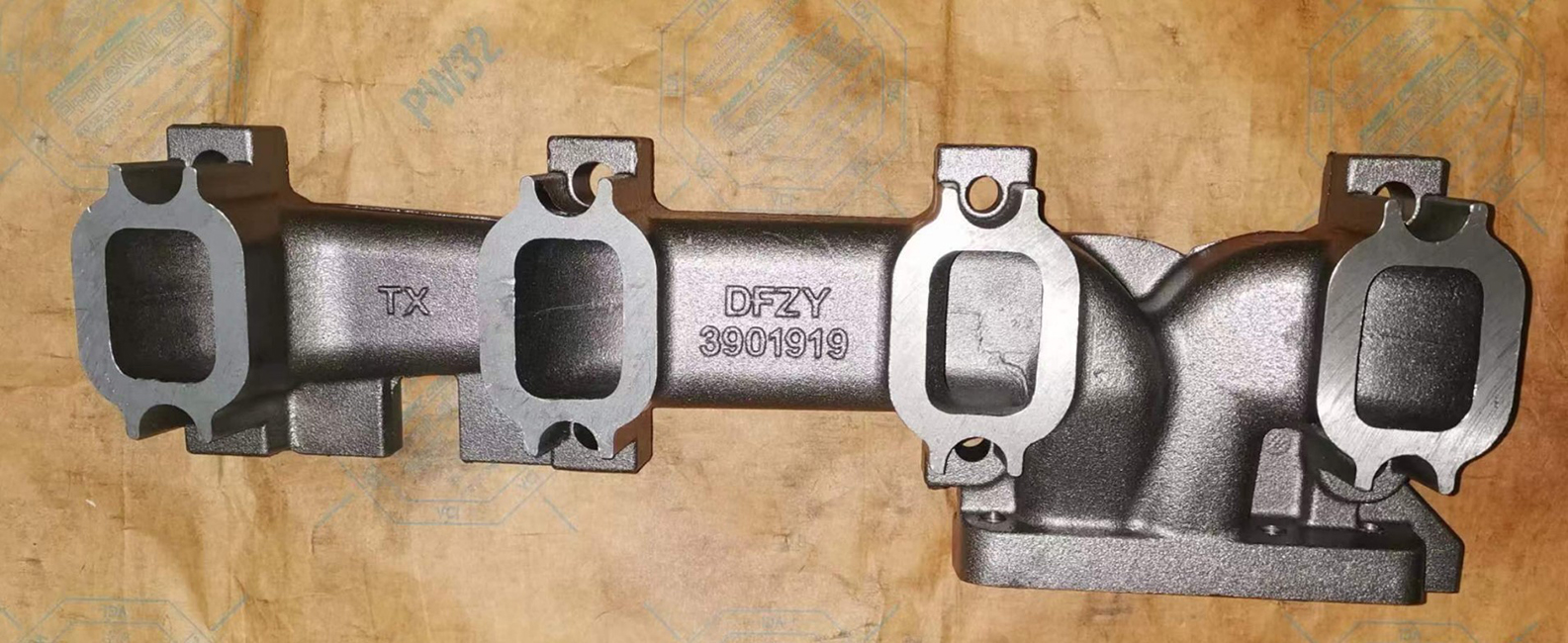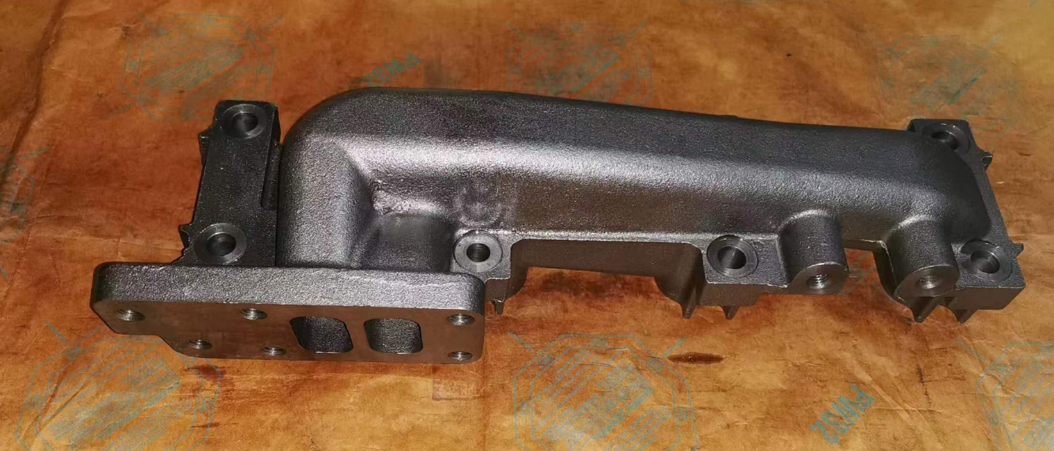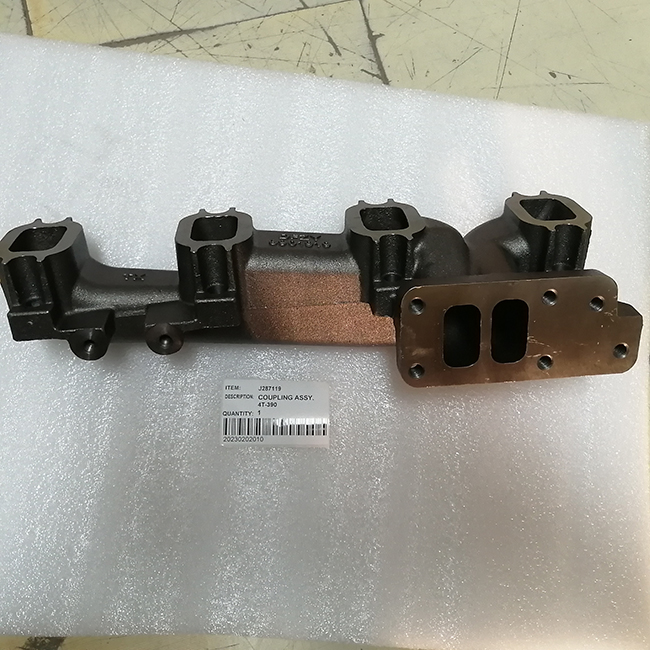 Description: Manifold exhaust for Cummins engine model 4T-390 on a Case backhoe loader model 580SL, 590SM, and more.