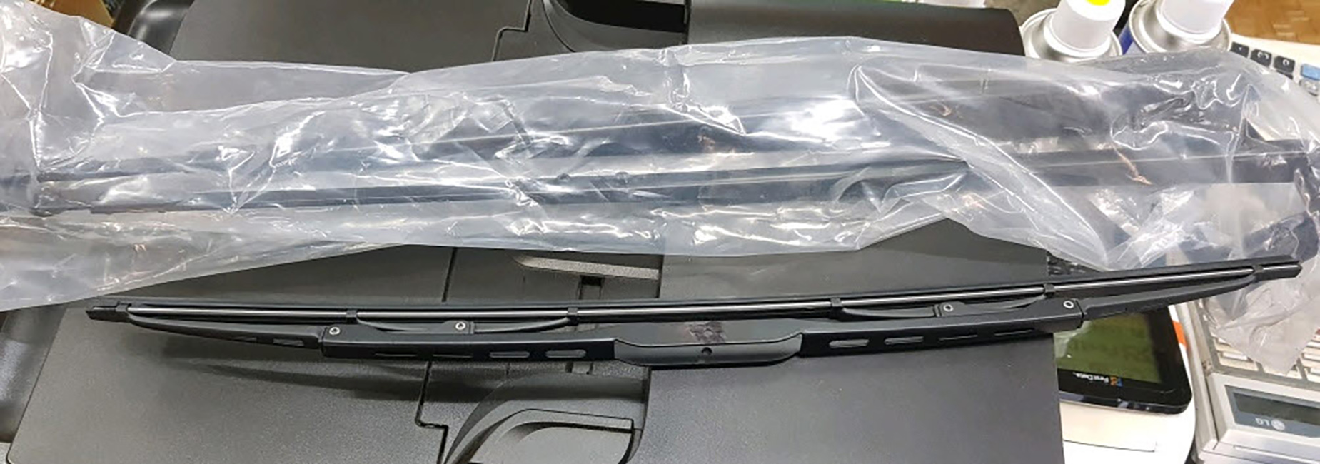 Description: Wiper assembly with twin arm and single blade for Hyundai excavator and wheel loader